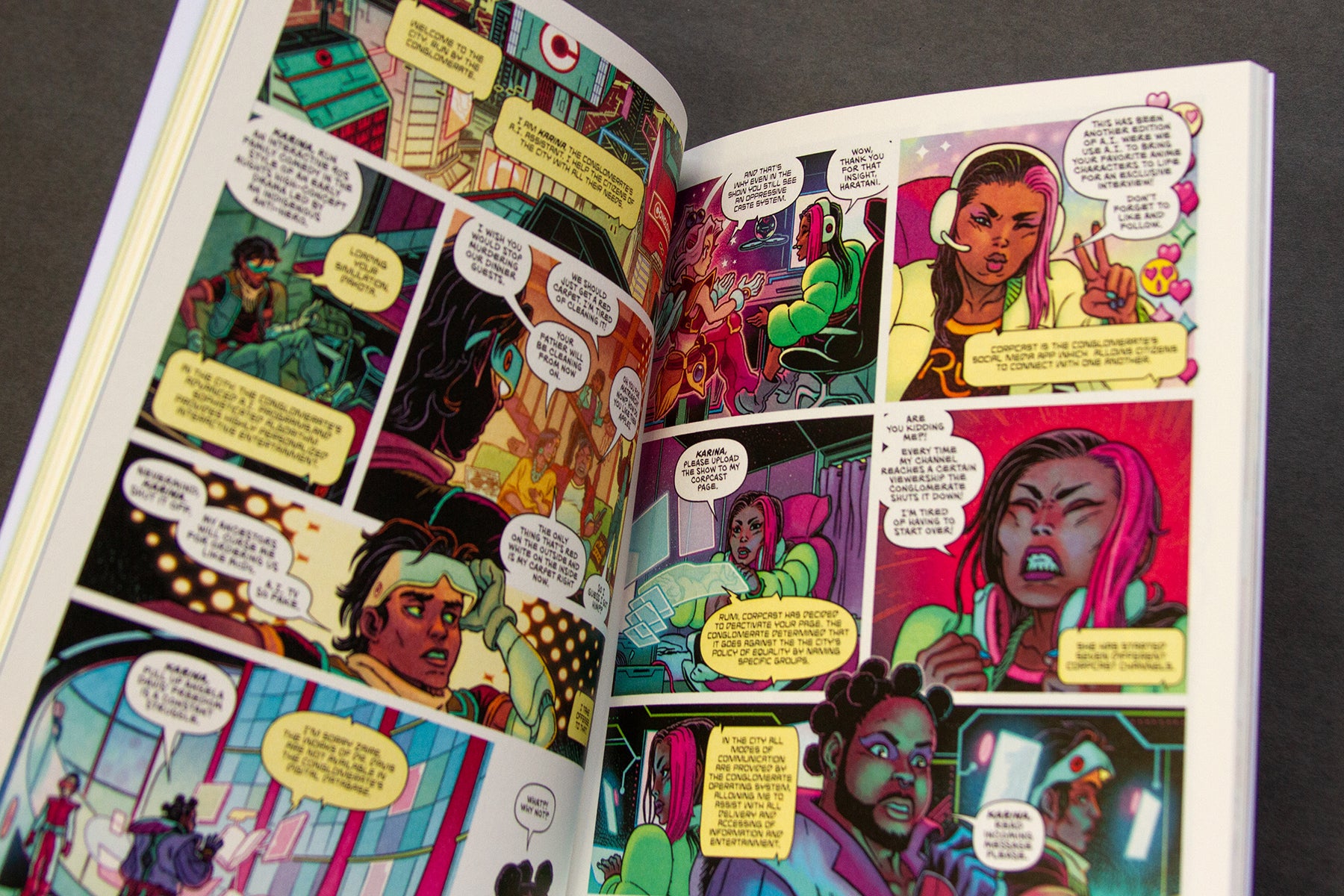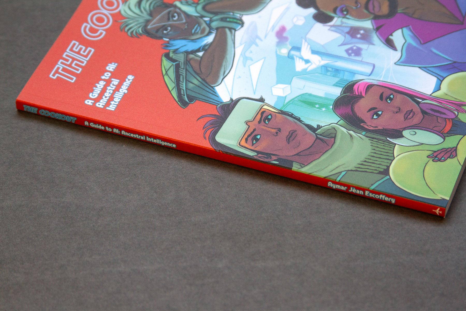 "The Cookout: A Guide to AI (Ancestral Intelligence) is a comic workbook and guide for storytellers, community organizers, researchers, and other leaders. The book is based on my academic book, Reparative Media: Cultivating Stories and Platforms to Heal Our Culture (MIT Press, 2025). The comic book narrative is an Afrofuturist tale set in a corporate dystopia that helps readers understand how media and technology can harm, and the guide offers prompts for them to write in and brainstorm how to work collectively towards repair.